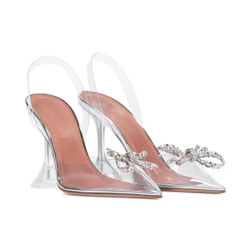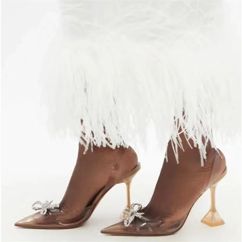 2025 New European And American Rhinestone Bow Transparent Heels Pointed Toe Jelly Fairy Style High Heels Candy Color Wine Glass