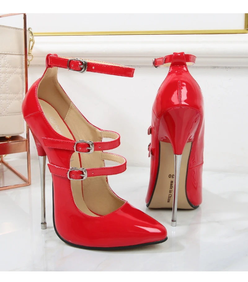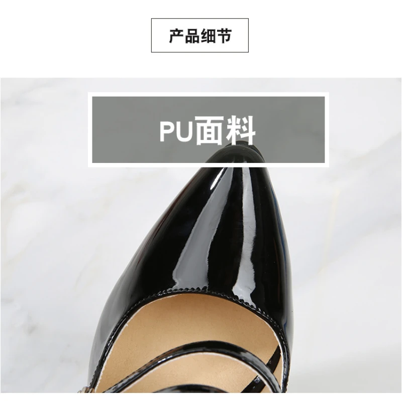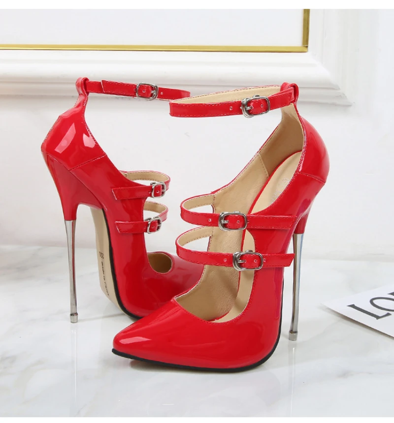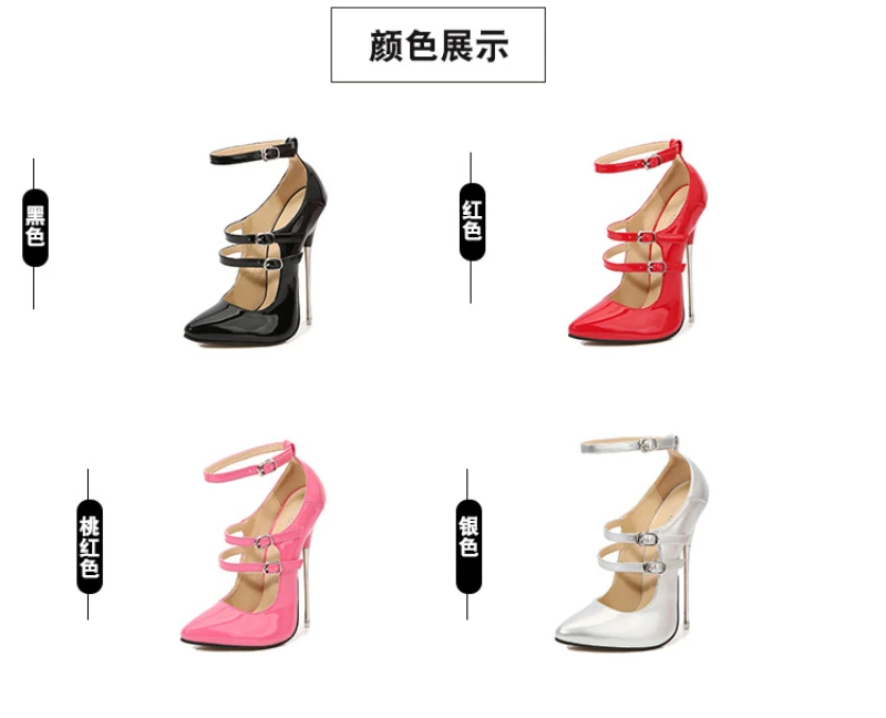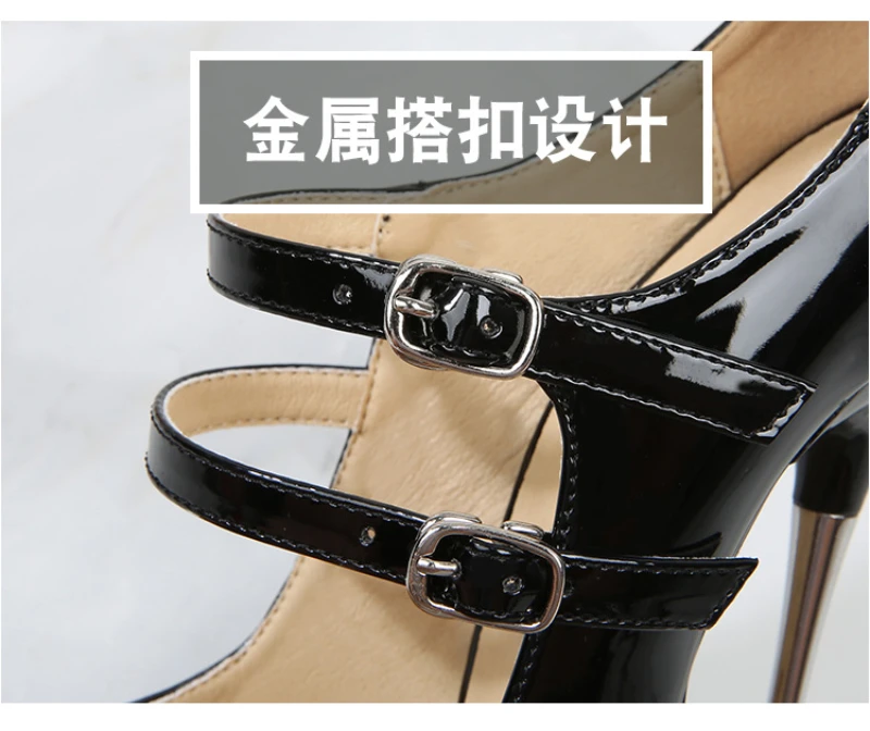 European And American Metal Heel Nightclub Large Size High Heels Elegant Slim Straps Banquet Super High Heels Solid Color