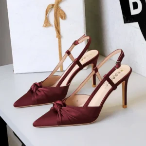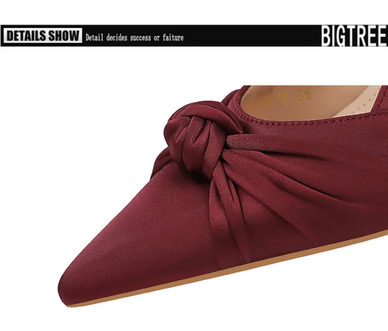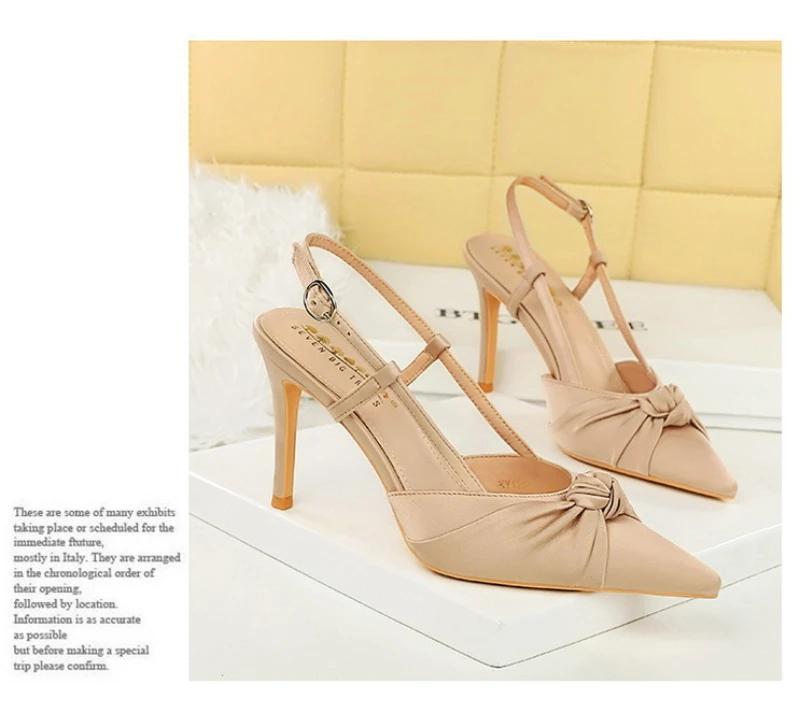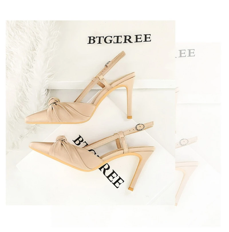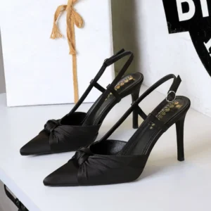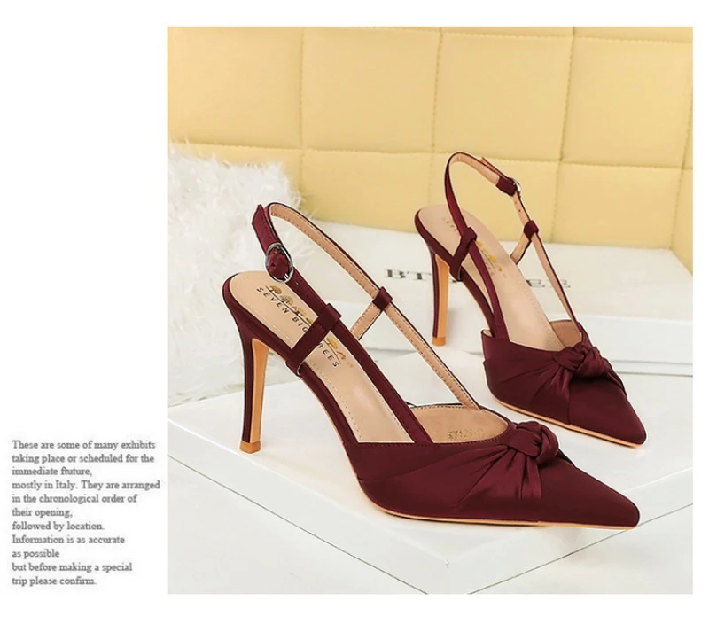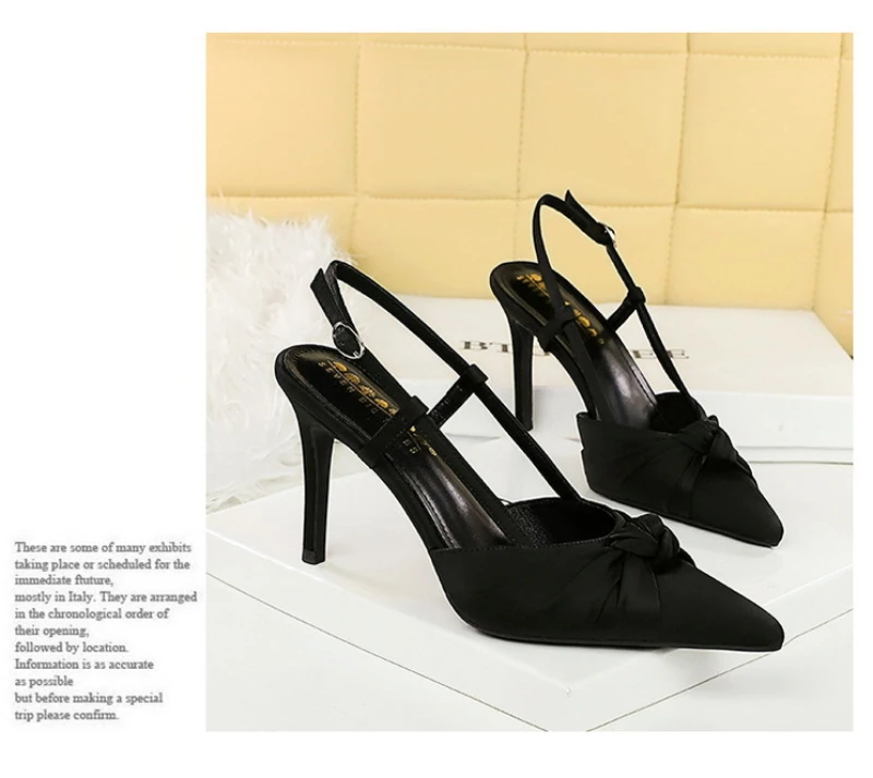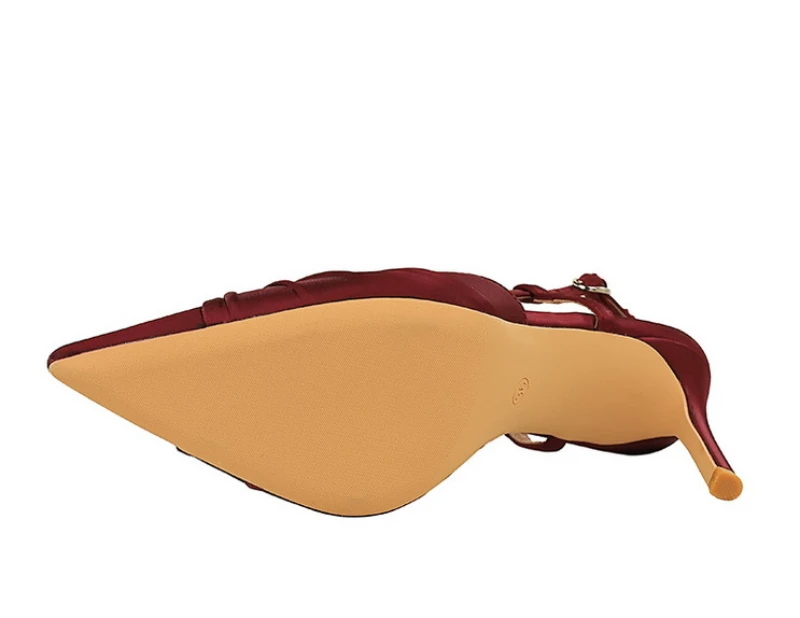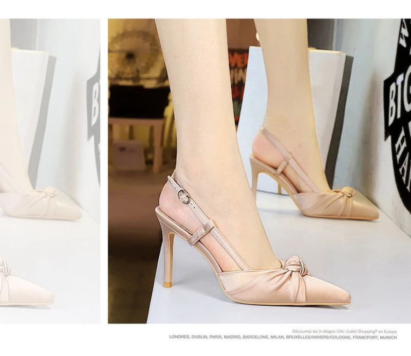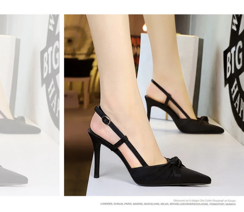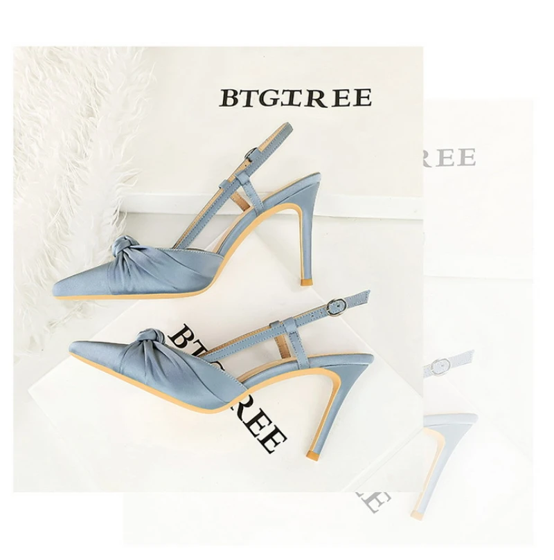 European And American Style Banquet Silk Bow Slim Heels High Heels Pointed Toe Shallow Mouth Back Empty Head Shallow Mouth