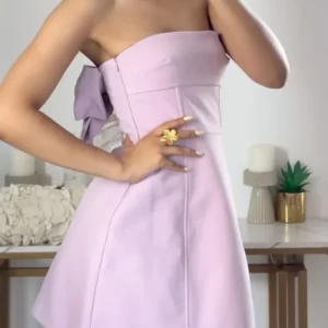Trendix Pink Mini Tube Top Dress For Women Sexy Off Shoulder Slim Bow Backless Short Dresses Street Casual Party Fashion Dress