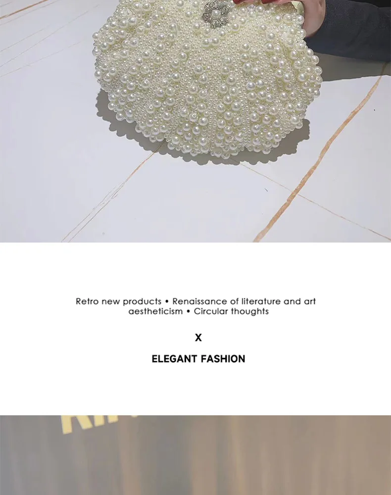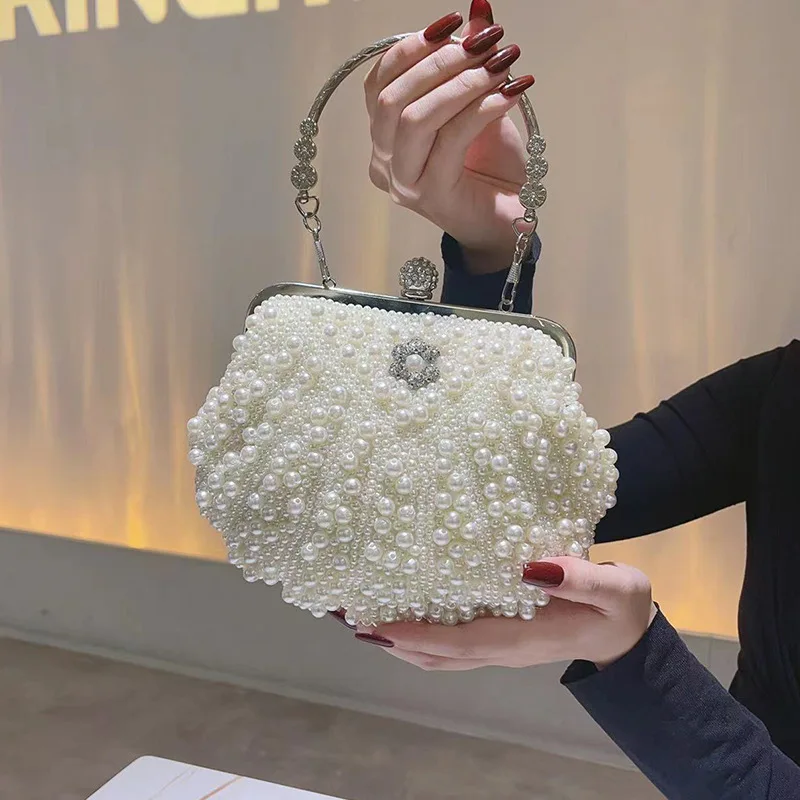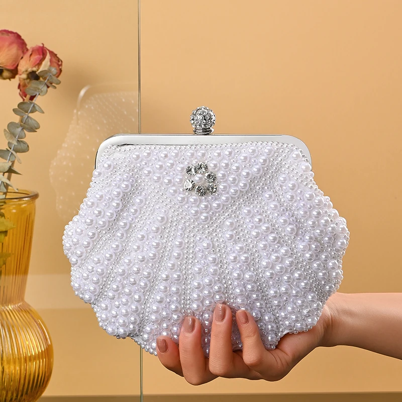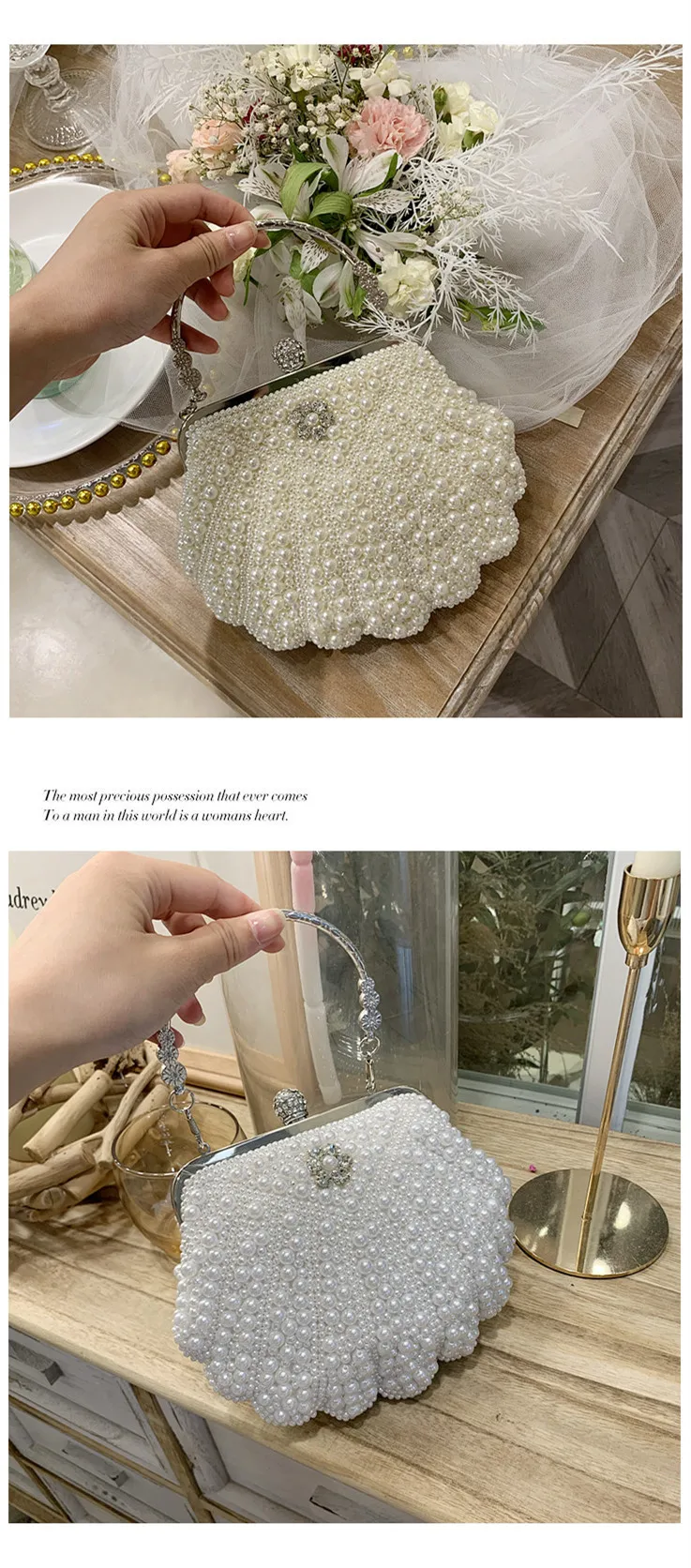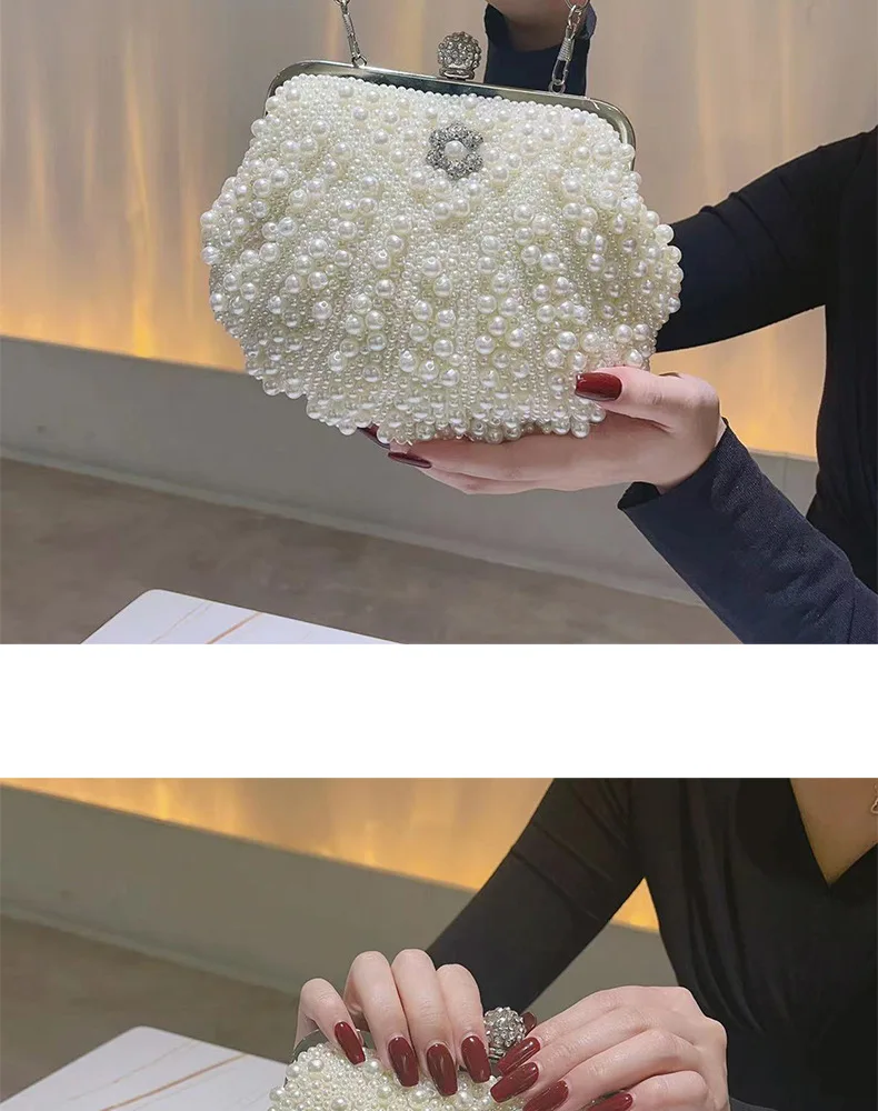 Womens Evening Bag Artificial Pearl Purse Evening Clutch Bag Wedding Purse Bridal Prom Handbag Party Bag